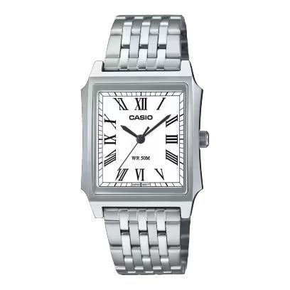 El MTP-B190D-7BVEF es un reloj elegante de Casio que combina estilo clásico con funcionalidad. Su caja de acero inoxidable brillante le confiere un aspecto sofisticado, ideal para diversas ocasiones, desde eventos formales hasta el uso diario. La esfera blanca es fácil de leer, con manecillas y marcadores en un tono plateado que añaden un toque de distinción. Este modelo cuenta con una correa de acero inoxidable que proporciona comodidad y resistencia. Además, es resistente al agua hasta 30 metros, lo que lo hace adecuado para el uso cotidiano. Con una batería de larga duración, es perfecto para quienes buscan un reloj fiable y atemporal.